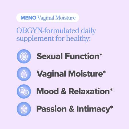 MENO Vaginal Moisture is a daily, hormone-free supplement that helps with vaginal dryness and sexual function in women.