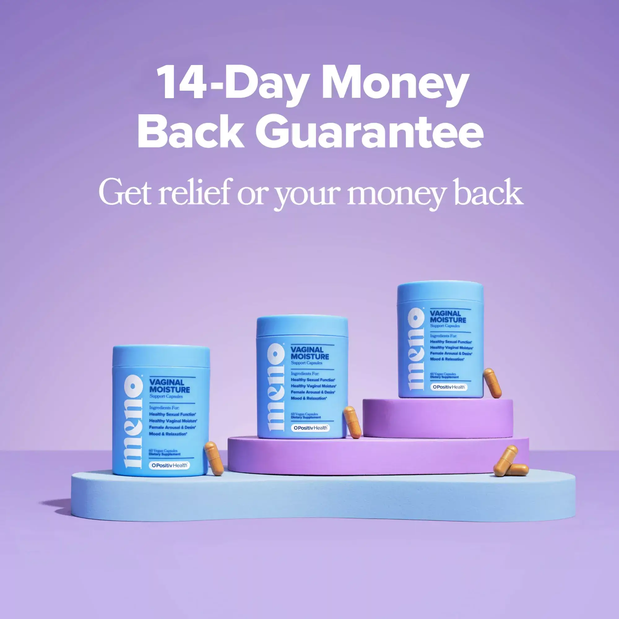 We formulated MENO Vaginal Moisture to be complementary to MENO Menopause Relief. MENO Menopause Relief is designed to support people experiencing menopause symptoms such as hot flashes and night sweats while MENO Vaginal Moisture is recommended for individuals looking for additional support in areas such as female sexual arousal and vaginal moisture.